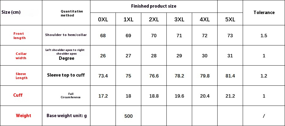 Size: 0XL,1XL,2XL,3XL,4XL,5XL