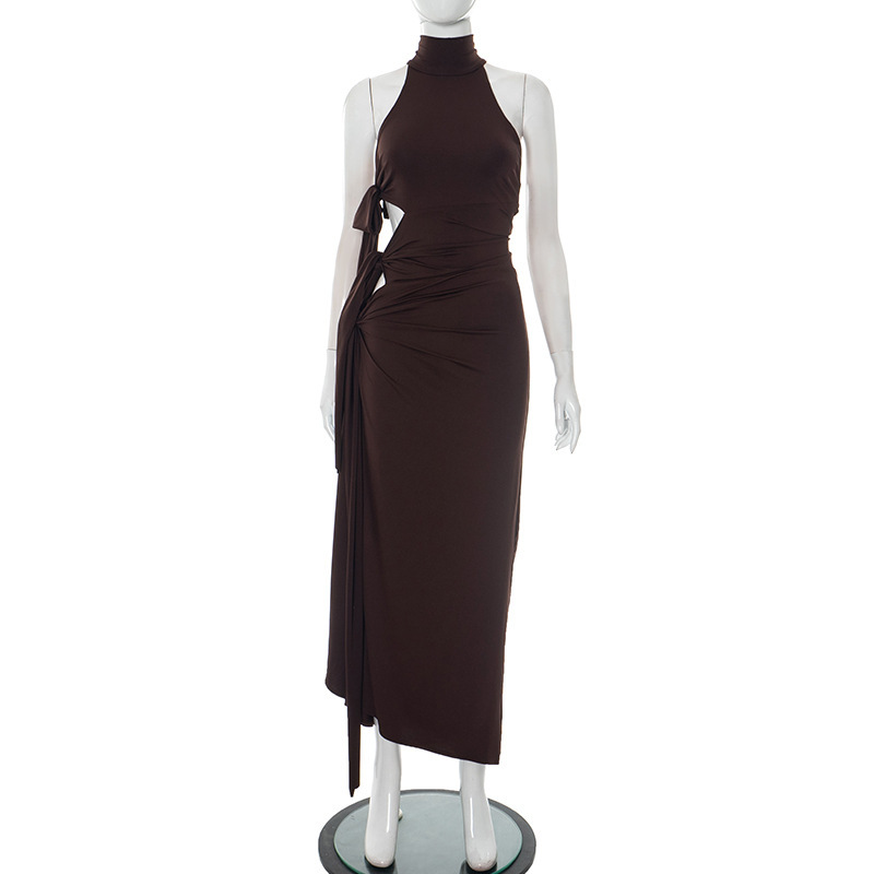 Be the first to review “Round Neck Halter Side Hollow Out Tied Sexy Jumpsuit Long Dress”